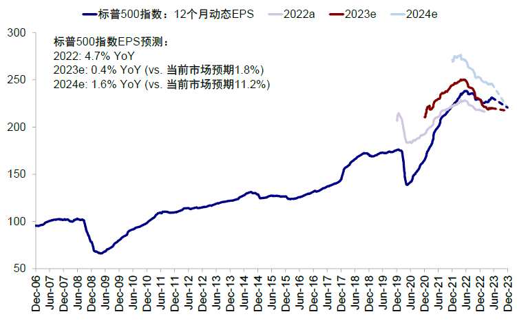 圖表29:我們預(yù)計2023年和2024年標(biāo)普500指數(shù)EPS增速或分別降至0.4%和1.6%