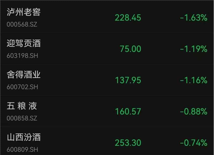 整體來看,受8月經(jīng)濟(jì)數(shù)據(jù)大超預(yù)期影響,零售、旅游板塊臨近午盤時(shí)均有不同程度的漲幅,但是白酒股落后于其余大消費(fèi),一線白酒領(lǐng)跌,瀘州老窖跌近2%,迎駕貢酒、舍得酒業(yè)(維權(quán))跌超1%。