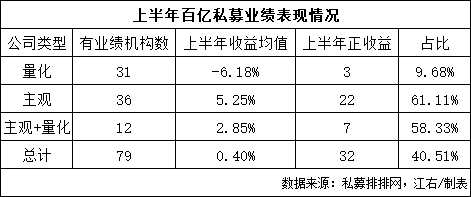 雖然6月市場走弱,百億私募6月也遭遇較大回撤,但上半年依然維持了正收益。私募排排網(wǎng)數(shù)據(jù)顯示,截至6月30日,有業(yè)績記錄的79家百億私募,上半年收益均值為0.40%,其中32家實(shí)現(xiàn)正收益,占比為40.51%。