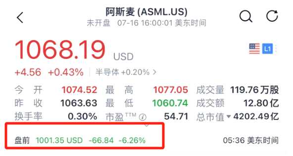 消息出來之后,全球芯片股集體大跌。美股盤前,阿斯麥大跌6%左右,臺積電美股跌3.62%,英偉達(dá),AMD股價跌超3%。