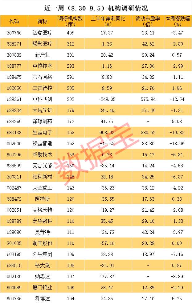 近一周機構(gòu)調(diào)研個股數(shù)量有660多只,邁瑞醫(yī)療成為調(diào)研機構(gòu)數(shù)量最多的股票。