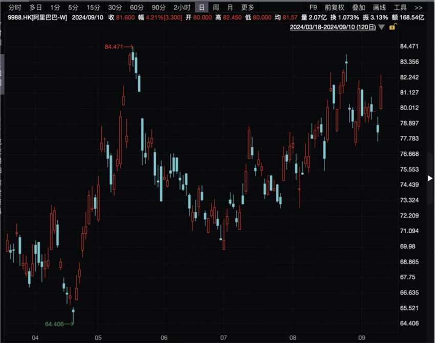 9月10日,阿里巴巴-W大漲4.21%,成交168.54億港元。滬深交易所9月9日發(fā)布公告顯示,阿里巴巴于香港聯(lián)交所上市的普通股獲納入港股通,9月10日起生效。屆時(shí),內(nèi)地合資格的投資者可經(jīng)由滬深交易所購(gòu)買(mǎi)該股票。