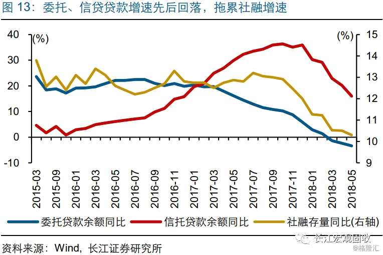(2)去杠桿持續(xù)推進(jìn)下,非標(biāo)融資還將進(jìn)一步收縮,企業(yè)債券融資難有大幅改善;中性情形下,2018年社融存量增速或回落至9%左右。