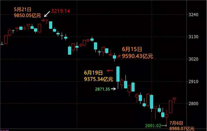 從6月19日至7月11日,融資余額已累計下降了670.3億元,僅6月19日一日降幅便占全部下降額度的32%。而今年1月至5月,融資余額下降幅度累計不過421億元,尚不及這短短18個交易日的降幅。