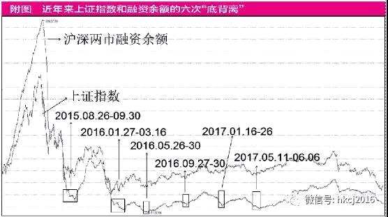 六、2017年5月11日至6月6日。上證指數(shù)在5月11日探底3016.53點,當天融資余額為8827億元。此后股指企穩(wěn)回升,而融資余額直至6月6日才見底8581億元。次日股指和融資余額同步增長,從3100點上漲到3450點附近。