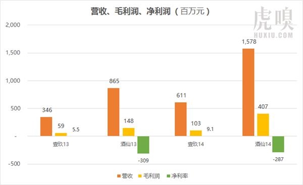 但說到凈利潤,酒仙網(wǎng)則遠遜于1919.2013年和2014年,1919凈利潤分別為550萬元和909萬元。同期酒仙網(wǎng)分別虧掉3.1億元和2.9億元。