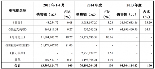公開說明書顯示,按電視劇劇目劃分,新媒誠(chéng)品收入構(gòu)成如下: