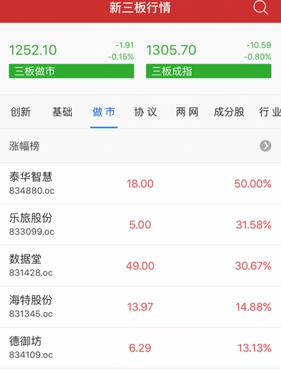 做市轉(zhuǎn)讓方面,783家公司發(fā)生交易,成交6860.45萬(wàn)股,成交金額4.25億元。其中,泰華智慧收漲50.00%,領(lǐng)漲做市轉(zhuǎn)讓個(gè)股。