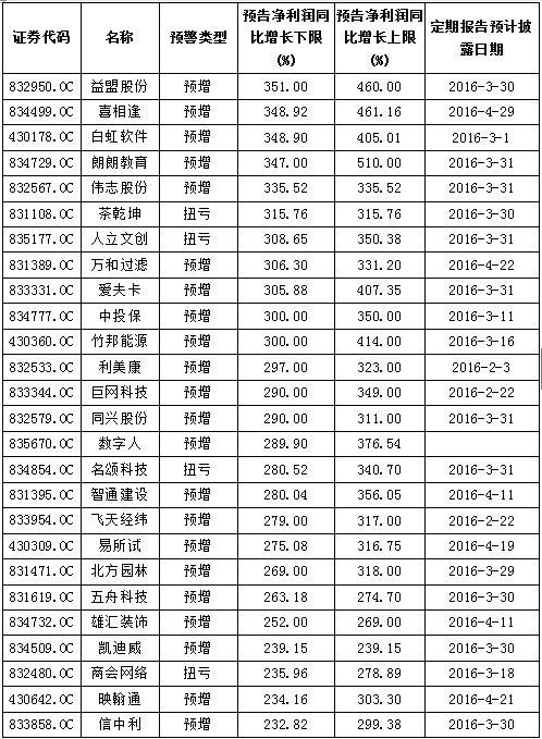 截至2月23日,創(chuàng)業(yè)板已經(jīng)發(fā)布2015年業(yè)績預(yù)告的上市公司中,預(yù)告凈利潤下限中位數(shù)為6224萬元。在新三板已經(jīng)披露業(yè)績預(yù)告的公司中,預(yù)計凈利潤下限超過這一數(shù)目的不在少數(shù)。