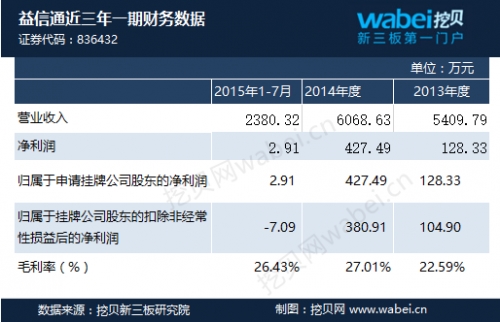 益信通新三板掛牌上市 2015年1-7月?tīng)I(yíng)收2380萬(wàn)元