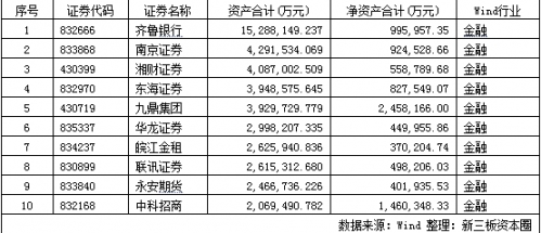 首先是資產狀況。長期以來,新三板都認為是中小微型企業(yè)的聚集地,但經過近兩年的快速發(fā)展,新三板上開始出現超大體量的掛牌公司——甚至從規(guī)模上看,這些上榜公司絲毫不讓于A股主板上市公司!值得注意的是,新三板上資產最大的十家掛牌企業(yè),均來自于金融行業(yè)!