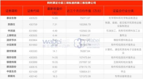 同時(shí)滿足分層三項(xiàng)標(biāo)準(zhǔn)的新三板掛牌公司 泰谷生物、凱路仕、中潤(rùn)油、潤(rùn)農(nóng)節(jié)水、分豆教育、捷世智通、維珍創(chuàng)意、銀橙傳媒、麟龍股份、中喜生態(tài).