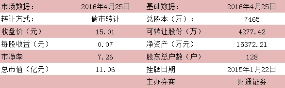 【意歐斯年報(bào)點(diǎn)評(píng):開拓銷售渠道 推動(dòng)業(yè)務(wù)轉(zhuǎn)型】公司公布了 2015 年年度報(bào)告,2015 年公司營(yíng)收達(dá)到 6991.90 萬元,同比增長(zhǎng) 19.35%,歸屬于掛牌公司股東的凈利潤(rùn)達(dá)到 426.37 萬元,同比增長(zhǎng) 4.44%,基本每股收益為 0.07 元,同比降低12.50%,歸屬于掛牌公司股東凈資產(chǎn)達(dá)到 15372.21 萬元,同比增長(zhǎng) 198.58%。業(yè)績(jī)?cè)鲩L(zhǎng)較為穩(wěn)定。