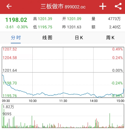 周四,新三板市場(chǎng)仍延續(xù)弱勢(shì),做市指數(shù)時(shí)隔10個(gè)月再次跌破1200點(diǎn),至此做市指數(shù)連續(xù)八個(gè)交易日收陰線,凸顯市場(chǎng)弱勢(shì)。截至收盤,三板做市指數(shù)報(bào)1198.02點(diǎn),跌3.61點(diǎn),跌幅0.30%,成交額僅有2.40億元。