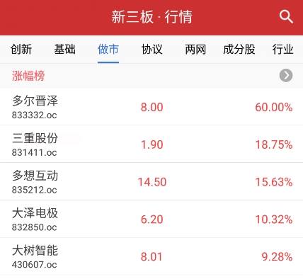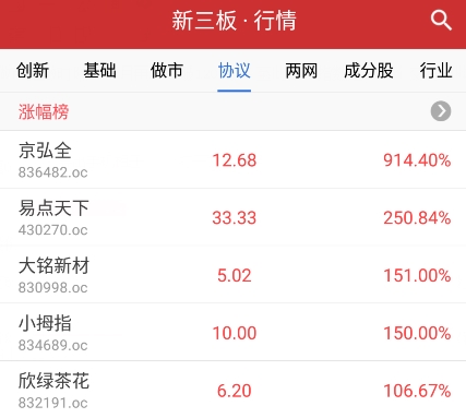 協(xié)議轉(zhuǎn)讓漲幅前五