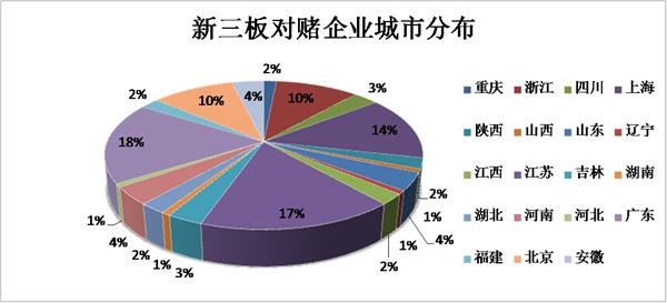 而從對(duì)賭的企業(yè)城市分布情況來(lái)看,江蘇、廣州、上海、北京等地的新三板企業(yè)對(duì)賭比例居前。這也與新三板掛牌企業(yè)的地域分布格局一致,根據(jù)股轉(zhuǎn)系統(tǒng)的信息,掛牌企業(yè)數(shù)量居前五的省市分別是北京、廣東、江蘇、上海、浙江。