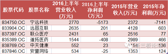 據(jù)不完全統(tǒng)計(jì),論壇君注意到,除了寧遠(yuǎn)科技,新三板市場(chǎng)上還有5家互聯(lián)網(wǎng)醫(yī)療公司。縱觀這些公司的業(yè)績(jī),上半年凈利潤(rùn)大都在100萬(wàn)以下,并不夠亮眼。