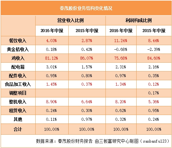 一手將自產(chǎn)安全雞肉推上飯桌收獲餐飲服務(wù)溢價收益,一手將優(yōu)質(zhì)產(chǎn)雞銷售搬上互聯(lián)網(wǎng)擴寬渠道,實現(xiàn)業(yè)績增長可期。實際上,其財務(wù)報告顯示,這兩項業(yè)務(wù)調(diào)整,確實正在逐步影響公司收入結(jié)構(gòu)。