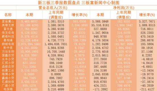 新三板三季報:星座魔山凈利潤漲33倍,小貸公司業(yè)績下滑最多