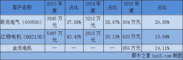 過去三年,永宇沖片的客戶都是各大上市公司,包括江特電機、臥龍電氣,還有剛剛IPO被否的浙江金龍電機。