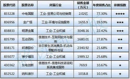 據(jù)統(tǒng)計(jì),2015年以三星為第一大客戶的新三板掛牌企業(yè)共有8家,分別是中電國服、金廣恒、明源金屬、邦德股份、互動百科、博寧福田、納科諾爾和東電創(chuàng)新。