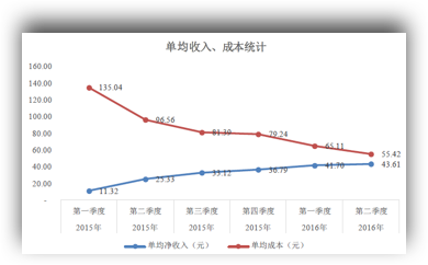 此外他還對神州財報里的單均折扣率的變化拋出問題,他認為很難解釋“2016年第一季度的充返力度為充100返20時折扣率為45%; 2016年4月開展充100返100的充返活動,折扣力度遠遠大于一季度,但是二季度的折扣率反而降低為44%”,更直觀的他給出一張過去一年神州專車的單均收入和成本統(tǒng)計的圖表,并提出疑問“4月份100%充返,為什么單均成本不升反降呢?