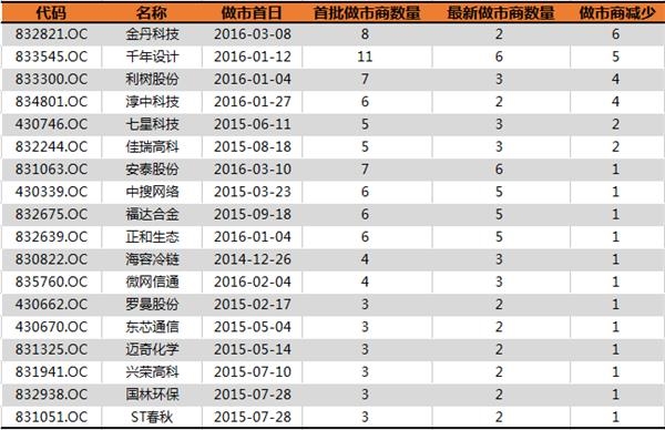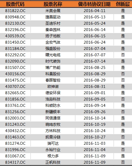 去年2015年10月29日,招商證券主動退出為海容冷鏈(830822.OC)提供做市服務(wù),成為第一家退出做市服務(wù)的做市商。今年1月18日,奇維科技(430608.OC)發(fā)布做市轉(zhuǎn)協(xié)議公告,正式打響新三板做市交易轉(zhuǎn)為協(xié)議交易的第一槍。