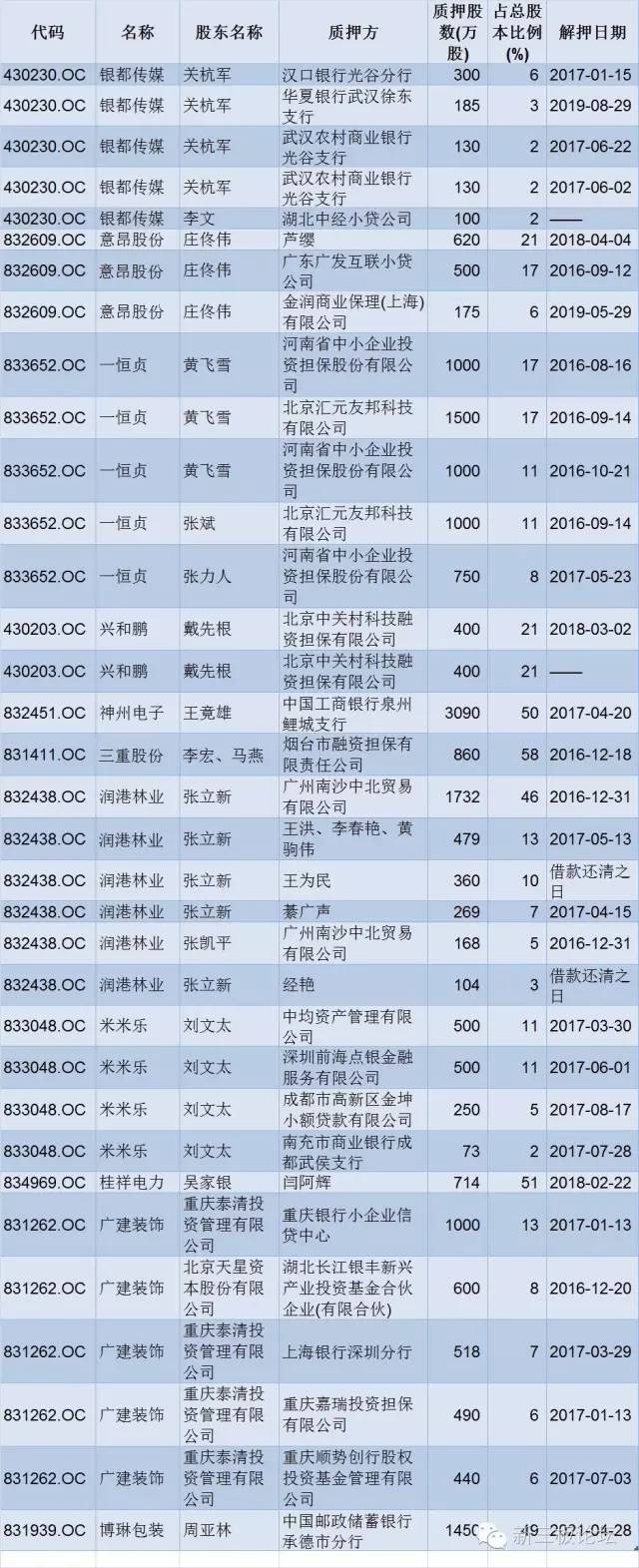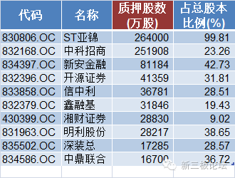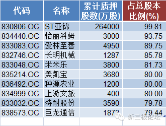 累計(jì)質(zhì)押股份數(shù)前十的新三板公司