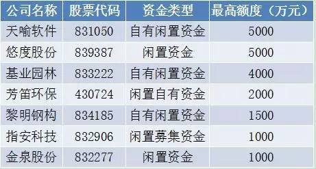 其中,天喻軟件和悠度股份的購買理財產(chǎn)品額度最高達(dá)5000萬元,基業(yè)園林僅次之,為4000萬元。相比之下,指安科技與金泉股份用來買理財?shù)念A(yù)算最低。