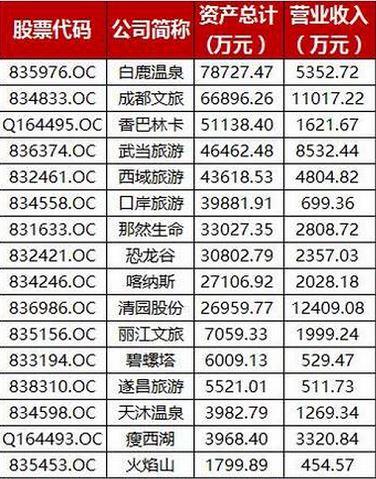 隨后,當(dāng)新三板突然火爆迅速成長時(shí),東派代表揚(yáng)州瘦西湖、常州恐龍園(833745.OC),西派領(lǐng)頭者吐魯番火焰山(835453.OC)、阿勒泰喀納斯(834246.OC),南派代表廣州塔及云南恐龍谷,北派代表呼倫貝爾的口岸旅游(834558.OC),中間還有清園股份(836986.OC)、武當(dāng)旅游(836374.OC)等都選擇了新三板市場(chǎng)。