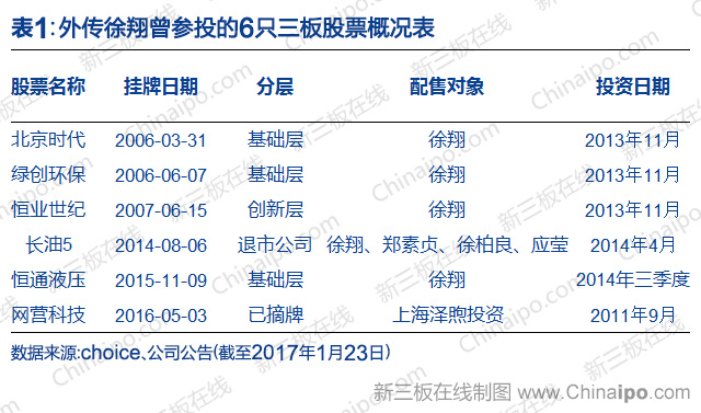 徐翔投6只新三板股票
