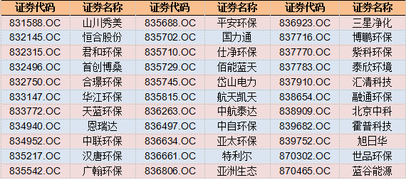 新三板33家大氣污染治理企業(yè)名單(依照證券代碼排名)