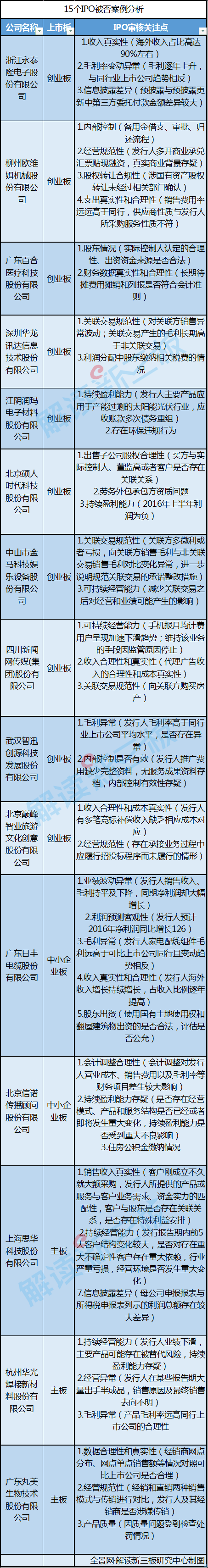 圖:近期15家IPO審查被否核心原因分析