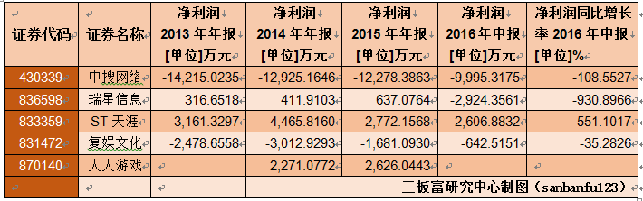 由于近期人人游戲的入駐,掛牌新三板的老牌互聯(lián)網(wǎng)企業(yè)數(shù)量上升至五家,包括中搜網(wǎng)絡(luò)、ST天涯、人人游戲、瑞星信息、和復(fù)娛文化。