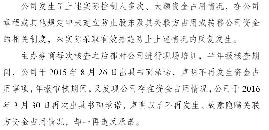 雖然,今天披露的處罰決定書并無詳細(xì)列出每筆資金占用事項,但從去年11月25日股轉(zhuǎn)系統(tǒng)下發(fā)的紀(jì)律處分決定可以窺探一二。