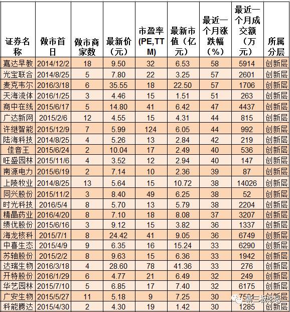 最近一個(gè)月漲幅超30%的創(chuàng)新層做市股: