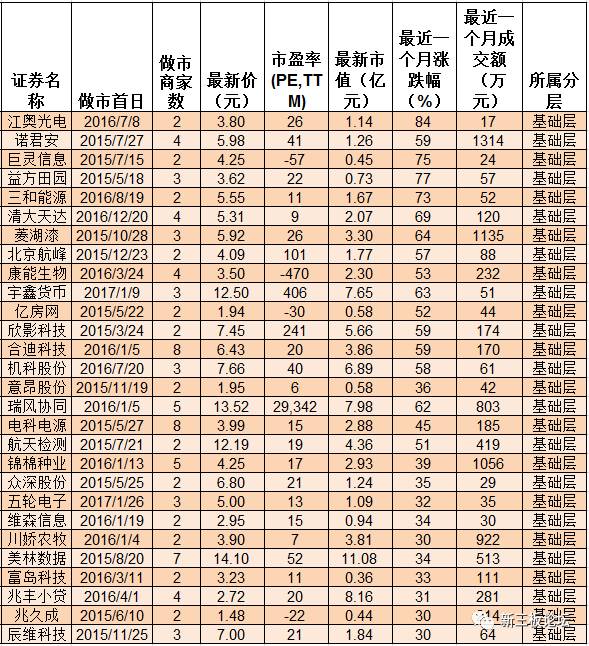 最近一個(gè)月漲幅超30%的基礎(chǔ)層做市股: