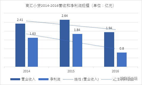 2016年度,商匯小貸利息收入2.54億元,同比減少25%;利息凈收入(同時也是商匯小貸營業(yè)收入)1.94億元,同比減少了27%;實現(xiàn)凈利潤8035萬元,同比減少56%。