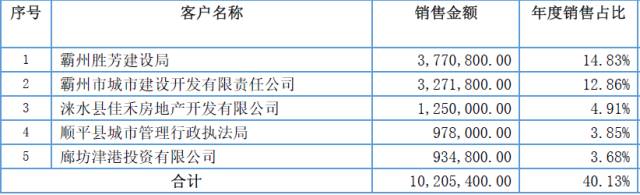 2015年,城興股份前五大客戶分別為: