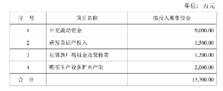 面對(duì)這樣一份靚麗的報(bào)表,坊間便開(kāi)始傳言,一貫不甘寂寞的尹榮造肯定會(huì)挾業(yè)績(jī)?cè)儆兴鶆?dòng)作的。果不其然,在年度報(bào)告公布11天后即3月14日,伯朗特再拋公告。這份題為《伯朗特:2016年股票發(fā)行方案(一)修訂》的公告,保留了2016年11月15日發(fā)布的題為《伯朗特:2016年股票發(fā)行方案(一)》的核心內(nèi)容:預(yù)定向發(fā)行13,700,000股股票,預(yù)備募集13,700萬(wàn)元。公告進(jìn)一步指出,本次募集到的資金主要用于:1、補(bǔ)充流動(dòng)性;2、用于研發(fā)及試產(chǎn)投入;3、租賃新廠房租金及裝修;4、購(gòu)買生產(chǎn)設(shè)備擴(kuò)充產(chǎn)能。具體的資金安排見(jiàn)下表: