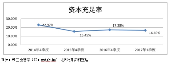 原因很簡(jiǎn)單,縱然去年底募得19.52億,但仍然難解其資本之渴,2016年年末其核心資本充足率不升反降,下降了3.41%,且有進(jìn)一步向下的趨勢(shì)。按照公司目前年均60%的復(fù)合增長(zhǎng)率這一發(fā)展速度,為保證未來(lái)的經(jīng)營(yíng)發(fā)展,未來(lái)一年時(shí)間里,公司應(yīng)還會(huì)再實(shí)施1-2輪這樣的融資計(jì)劃。