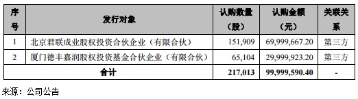 2017年5月23日,縱目科技發(fā)布股票發(fā)行情況報(bào)告書(shū),宣布完成此前的天價(jià)定增,公司以 460.80元/股發(fā)行21.70萬(wàn)股,募資9999.96萬(wàn)元。其中,北京君聯(lián)成業(yè)股權(quán)投資合伙企業(yè)以6999.97萬(wàn)元的價(jià)格認(rèn)購(gòu)其中的151909股,廈門(mén)德豐嘉潤(rùn)股權(quán)投資基金合伙企業(yè)以 2999.99萬(wàn)元認(rèn)購(gòu)其中的65104股。