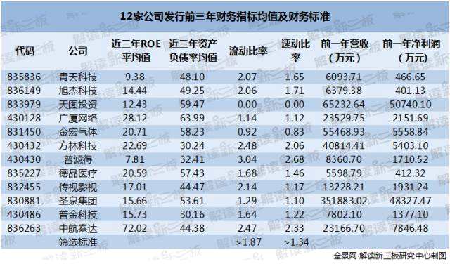 目前已有12家獲證監(jiān)會核準(zhǔn)發(fā)行雙創(chuàng)債的掛牌公司(圣泉集團(tuán)、普金科技、中航泰達(dá)未發(fā)行完成),其發(fā)行前三年的平均凈資產(chǎn)收益率(ROE)、資產(chǎn)負(fù)債率、流動比率、速動比率以及發(fā)行前一年的業(yè)績規(guī)模如下: