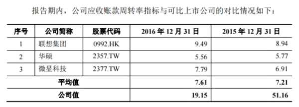 這樣的運(yùn)營模式,讓雷神科技在資金周轉(zhuǎn)方面,和所有同行業(yè)的上市公司聯(lián)想、華碩相比更為靈活。這一點(diǎn),從應(yīng)收賬款就可以看出。