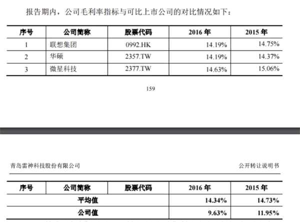 對雷神來說,問題仍然顯而易見。同期,雷神科技的毛利率遠(yuǎn)遠(yuǎn)低于同行業(yè)的上市公司,如下所示: