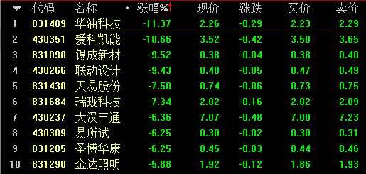 創(chuàng)新層做市股跌幅前十名
