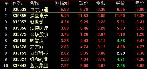 創(chuàng)新層做市股漲幅前十名