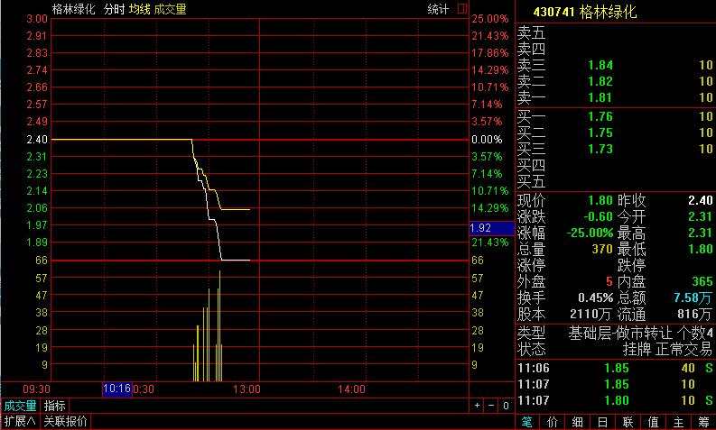 格林綠化早盤跌25%