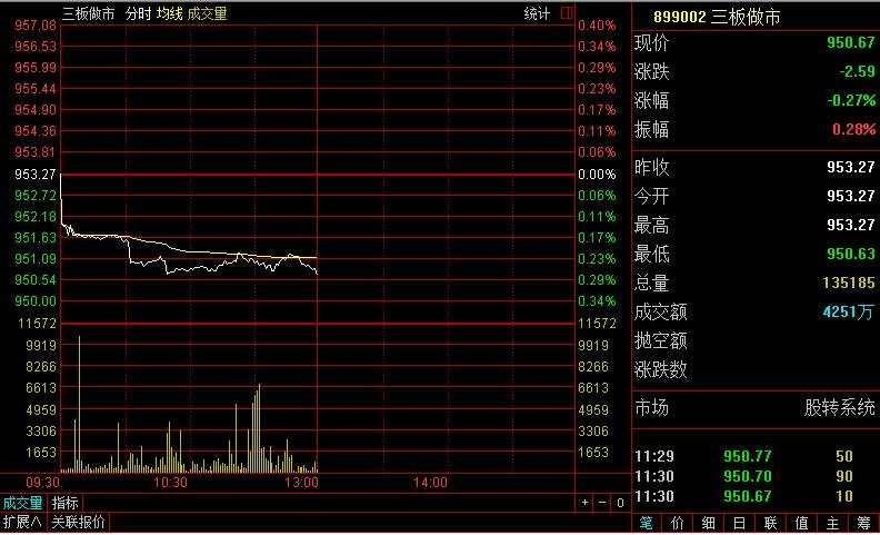 2月1日新三板午評(píng):做市指數(shù)報(bào)950.67點(diǎn) 聯(lián)訊證券成交1244萬(wàn)