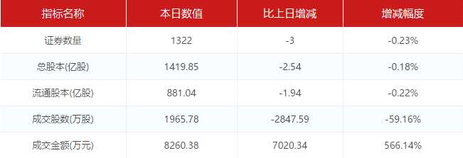2月23日,創(chuàng)新層、基礎(chǔ)層分別成交0.83億元和0.82億元,合計成交1.65億元。盤后協(xié)議轉(zhuǎn)讓方面,今日共有22家企業(yè)進行29起盤后大宗交易,成交額約為9415.80萬元。